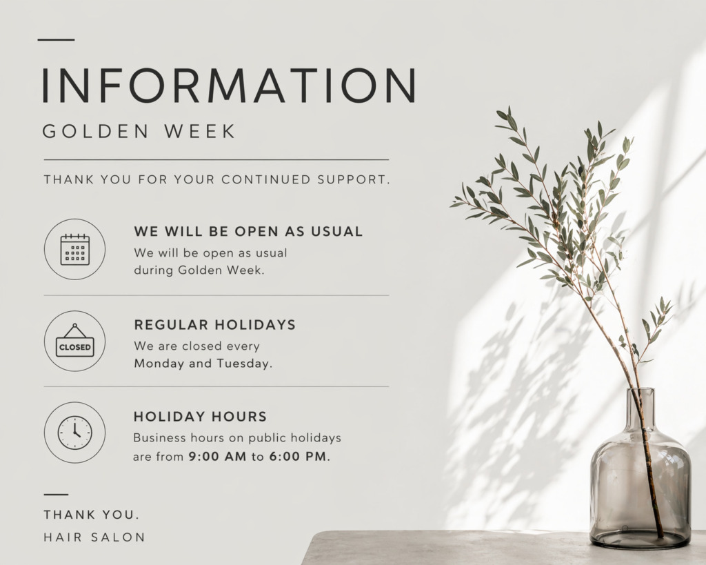 ゴールデンウィーク期間中の営業についてお知らせいたします。